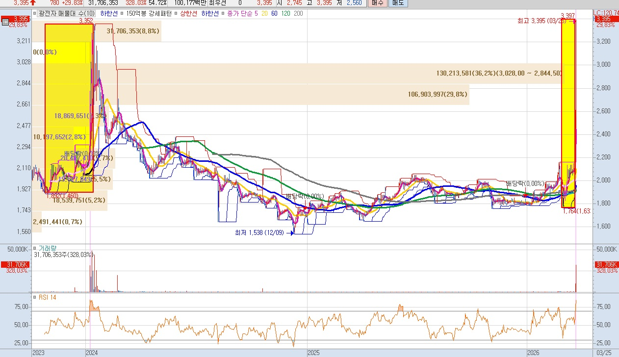 - 2026.03.24: 52주 신고가 경신 및 거래량 급증하며 상승폭 확대