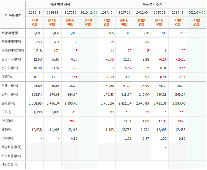 • 배당: 현재 주당 배당금은 0원이며, 성장을 위한 재투자 및 재무 구조조정 단계에 있어 배당보다는 자본 이득에 집중해야 할 시기입니다.