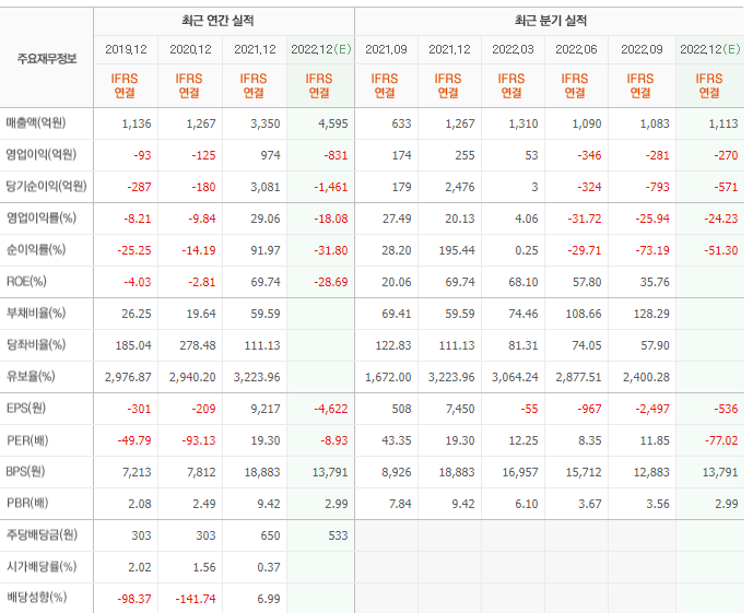 위메이드의 실적은 좋지 않은 편입니다. 상당기간 적자가 지속되고 있습니다. 21년 단기 실적 개선은 위믹스 판매에 의한 효과로 볼 수 있습니다. 22년 실적 또한 큰 폭의 적자가 예상되고 있어 주가의 강세에는 반전을 줄 수 있는 이슈가 필요합니다.