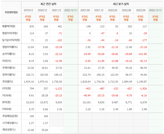 - 매출액 약 740억, 당기순손실 -31억