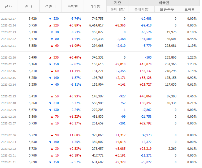 23.02.27 기준 외인은 해당 주식을 보유하고 있지 않습니다.