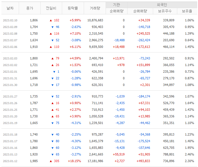 23.02.10 현재 외인 보유율은 1.06%입니다.
