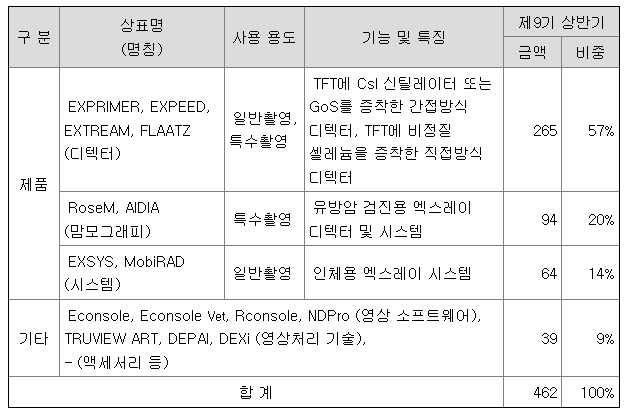 디알텍은 상기와 같이 특수촬영, 엑스레이, 의료영상 소프트웨어 및 장비 등 의료 관련 장비를 생산 및 판매하고 있다. 일반/특수촬영 장비가 전체 매출의 절반 이상을 차지하고 있어 가장 큰 비중을 가진다.